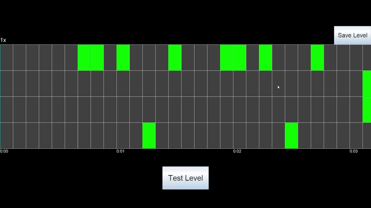 After constructing the basic gameplay loop, I developed a level-editor to make creating levels easier for myself. Once a handful of levels had been charted, I decided to make the level editor part of the public release so that players too could create levels of their favorite songs.